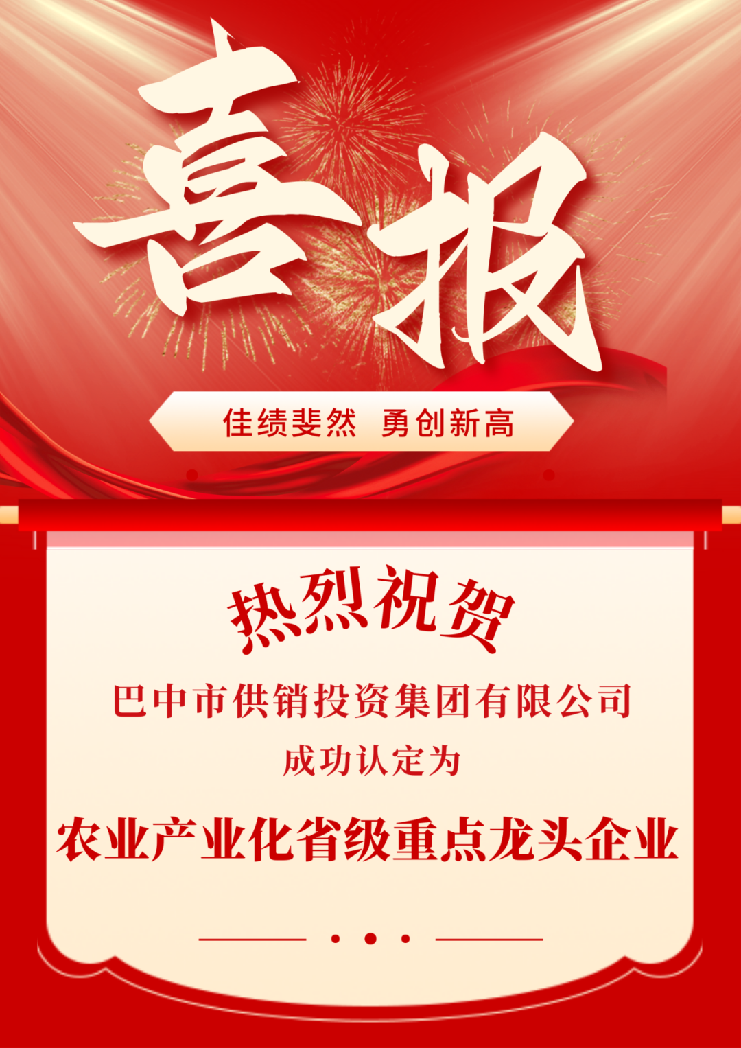 2024年12月27日,被四川省農(nóng)業(yè)農(nóng)村廳認(rèn)定為農(nóng)業(yè)產(chǎn)業(yè)化省級重點(diǎn)龍頭企業(yè)。