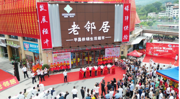 四川省供銷投資集團(tuán)黨委書記、董事長茍學(xué)川宣布“老鄰居•平昌供銷生活超市”正式開業(yè),四川省供銷社企業(yè)發(fā)展與金融服務(wù)處處長楊韜等領(lǐng)導(dǎo)莊嚴(yán)剪斷彩帶,迎進(jìn)第一批近1000人的消費(fèi)客人。