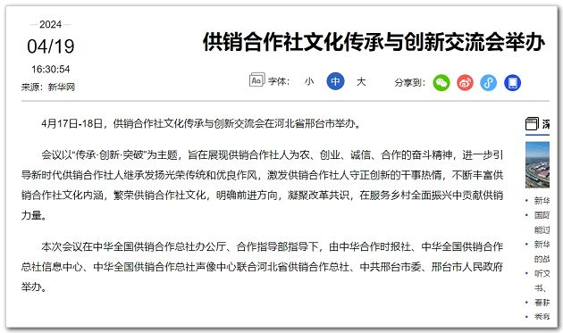 4月17日-18日,供銷合作社文化傳承與創(chuàng)新交流會(huì)在河北省邢臺(tái)市舉辦。