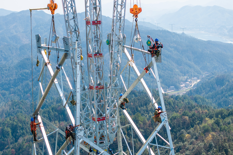 當(dāng)日,在湖南省益陽市安化縣冷市鎮(zhèn),湖南省送變電工程有限公司電力工人抓緊推進(jìn)“寧電入湘”工程組塔工作,力爭項目早日建成運營。